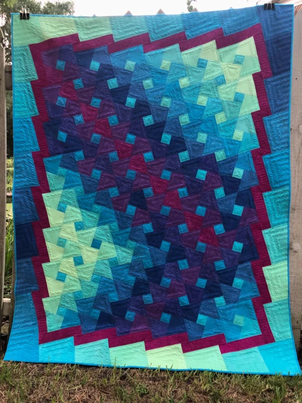 Elaine Wick Poplin is a talented quilter and artist known for her vibrant use of colour, particularly in batiks and modern fabrics. Her journey into quilting began at a young age, inspired by a family history rich in sewing traditions. She made her first quilt at just 11 years old, and her passion has only grown since. With a background in biology and years of teaching high school mathematics, Elaine’s work often reflects a unique blend of structure and improvisation.