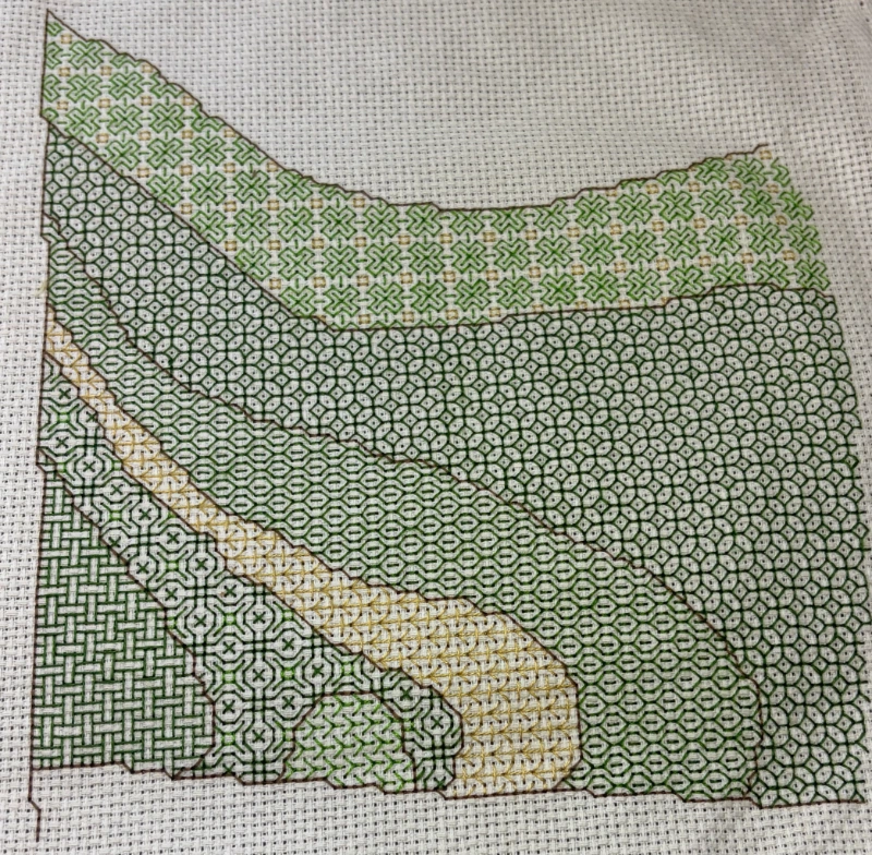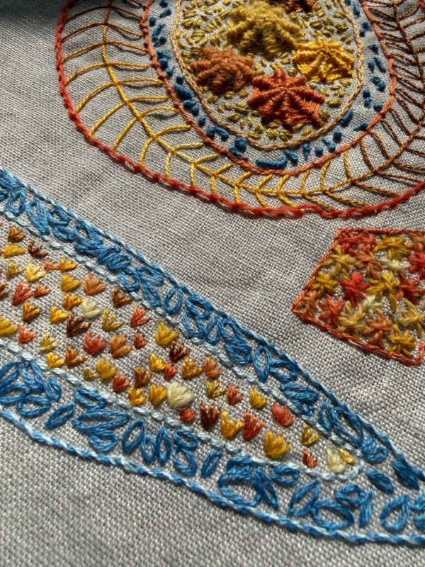 If I were to offer advice to anyone considering the course, it would be to embrace trying new things and not worry about everything being perfect. That is easier said than done. I found some techniques, particularly drawn thread work, quite intimidating at first. I hesitated because I was worried about making mistakes. But once I allowed myself to begin, I found the process incredibly satisfying. Even when things didn’t go quite right, it became part of the learning process.