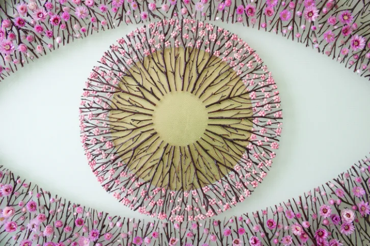 Olga Prinku is a contemporary artist known for her unique and intricate floral artistry. Born in Romania and now living in the UK, she has always been enchanted by the rich heritage of hand embroidery and weaving which she incorporates into her innovative approach to crafting and design. Paired with her love of entwining nature, she pioneered the concept of flowers-on-tulle embroidery. Her work primarily centres around the use of dried and pressed flowers to create stunning and ethereal pieces of art.