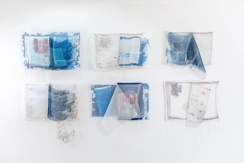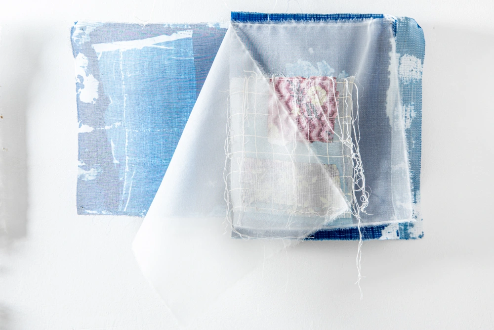 Few artists capture the emotional and historical resonance of cloth quite like Hannah Lamb. Working from her studio in Bingley, West Yorkshire, Hannah’s practice explores the dialogue between textiles, place, and memory. She’s best known for her delicate cyanotype prints and those ethereal, blue-toned “shadows” on fabric. As well as her pieces that blend stitch, print, and deconstruction in poetic harmony. Her work moves effortlessly between the personal and the historical, often responding to archives, architecture, and the rich textile heritage of northern England.